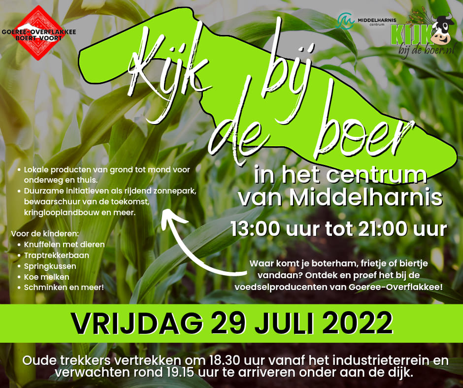 Vrijdag 29 juli 2022 organiseren Goeree-Overflakkee Boert Voort en BIZ Middelharnis Centrum Kijk bij de boer in het centrum van Middelharnis
